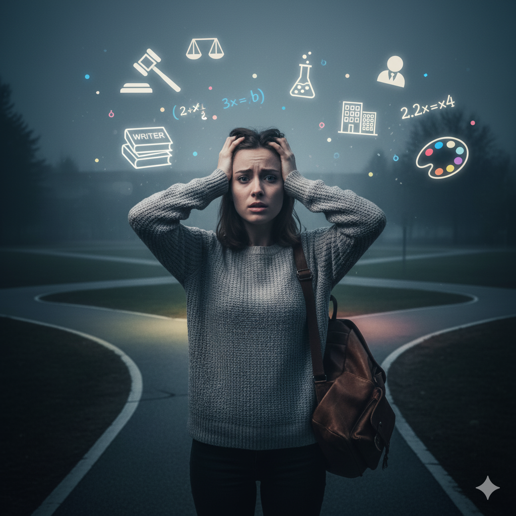 "교수님, 전 뭘 해야 할지 모르겠어요. 법대요? 재미있을 것 같은데... 만약 제가 작가로서의 재능을 썩히는 거라면요? 경영은요? 돈은 잘 벌겠지만... 제가 정말 그걸 원하는 걸까요? 제 '단 하나의 천직'을 잘못 고르면, 전 평생을 후회하며 살게 될 거잖아요. 무서워서 아무것도 못 하겠어요."