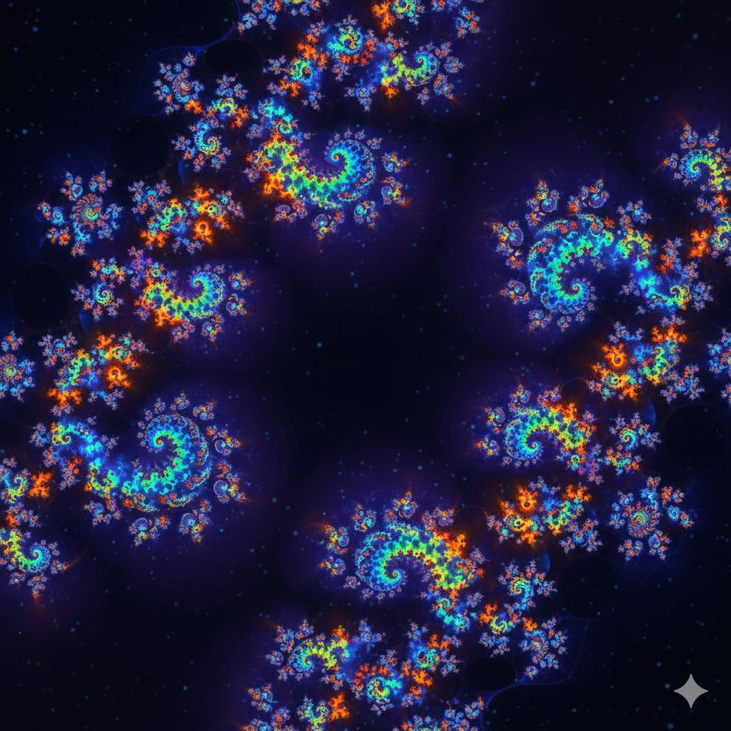 망델브로는 컴퓨터를 이용해 이 무한한 계산을 시각화했습니다. 인류 역사상 처음으로, 100년간 잠들어 있던 괴물이 모니터 위에 그 모습을 드러내는 순간이었습니다. 화면에 나타난 것은 혼돈이 아니었습니다. 무한히 반복되는 자기 유사성, 경이로울 정도로 정교하고 아름다운 패턴의 우주였습니다.